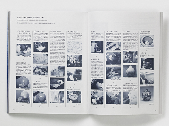 さらに、巻末の1色ページは、濃紺に銀を混ぜたオリジナルの特色インキで印刷し、細部にわたって釉裏銀彩の世界観を表現しています。