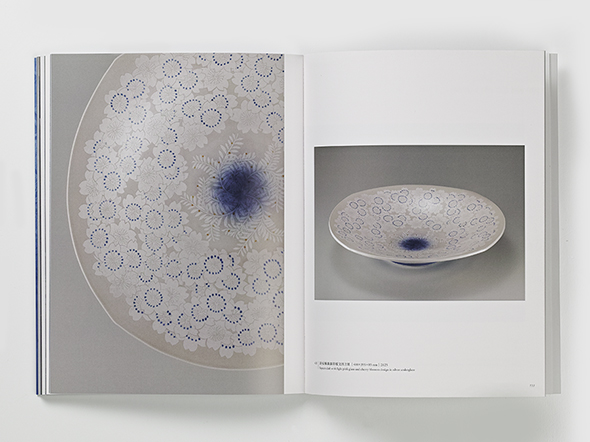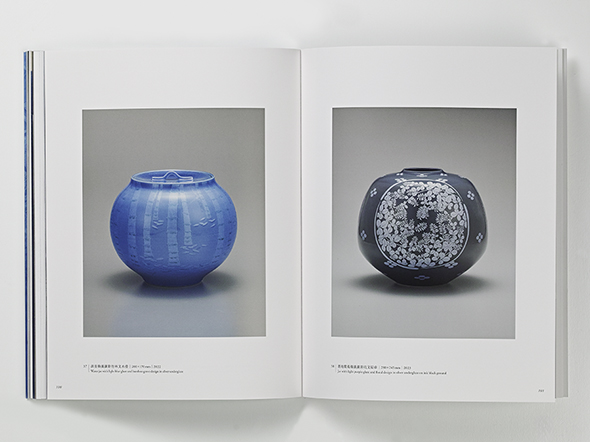 本図録では、中田一於氏の初期から現在に至るまでの代表作を中心に構成。淡青釉、藍青釉、淡桜釉、紫苑釉、白銀釉といった多彩な色釉と銀彩が織りなす表現の変遷をたどることができます。